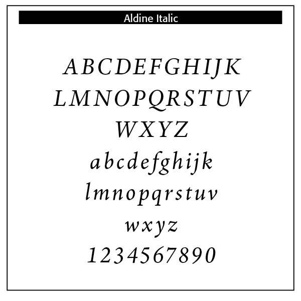 Italics takes notable influences from hand drawn calligraphy, with italic letters normally slanted slightly to the right. Upper case letters may have typographic swashes, flourishes inspired by ornate calligraphy. The name “italic” comes from their Italian use, to replace documents traditionally written in a hand-written style called chancery hand. Notice also the small “end point bowls” on some of the letters, where the ink pen stopped for a second.
