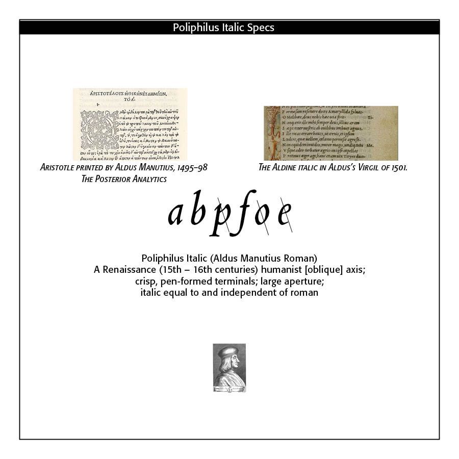- Italics in https://luc.devroye.org/fonts-30540.html AND The Printers’ Handbook of Trade Recipes, Hints & Suggestions Relating to Letterpress and Lithographic Printing, Bookbinding, Stationery, Engraving, Etc., compiled by Charles Thomas Jacobi, London, 1891, AND Talbot Baines Reed, A History of the Old English Letter Foundries (London, 1887) AND Theodore Devinne, The Practice of Typography (New York: The Century Co., 1902) AND Wikipedia on Italics and https://en.wikipedia.org/wiki/Aldus_Manutius AND https://ilovetypography.com/2014/11/25/notes-first-italic/ AND Bringhurst The Elements of Typographic Style 1992 edition, Hartley & Marks, Vancouver B.C.