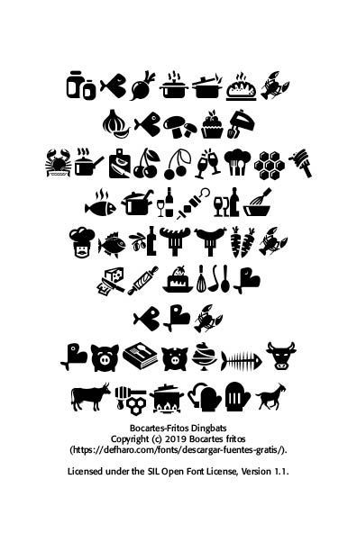The problematics of free fonts can also be seen in what are called Dingbat fonts, which are picture fonts, or symbol fonts, like Website Planet’s Bocartes-Fritos Dingbats font, a playful, symbol rich dingbats font. Using this font for illustrative purposes in planning picnics or announcing fun and games may seem commercially useful. However, the symbols themselves may be under copyright by someone else.