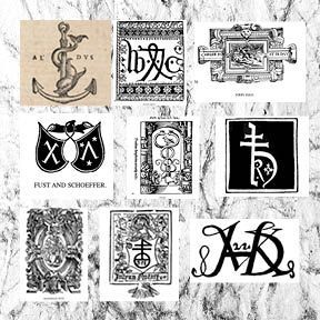Early Printers' Marks reveal a strong Christian theological stance. Printers’ Marks are symbols or logos that have been used as trademarks by early printers, starting in the fifteenth century. Before the introduction of copyrights, printers’ marks legitimized a printer’s work. Copyright legislation would not be introduced until the eighteenth century.