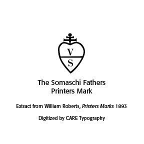 The Somachi Fathers operated a press, being a Catholic Order founded for men in Italy in the sixteenth century. Providing staff for boys’ homes and serving 95 parishes, as well as other ministries, their printer’s mark signaled a devotion to the Cross.
