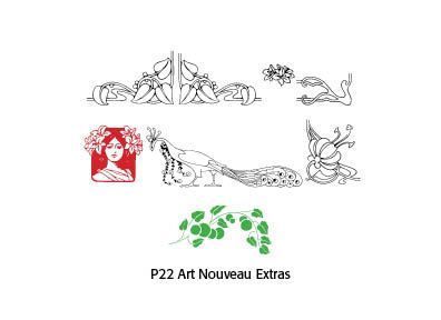 Art Nouveau typography was more art than rigid form with curvilinear, elegant, and stylized lettering forms, sometimes with asymmetrical or unconventional shapes. Typefaces mimicked natural shapes, like vines, tendrils and flowers, as in the P22 Art Nouveau Extras glyphs featured.