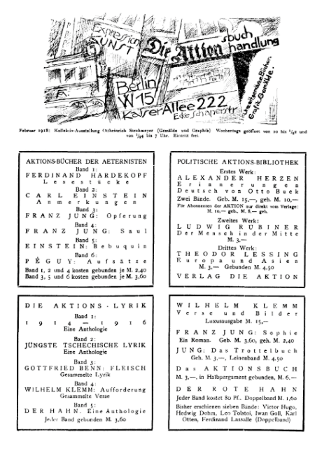 A leading Dada magazine of the period, Die Aktion (“The Action”), emphasized literary Expressionism and was published between 1911 and 1932 in Berlin. It stood for socialistic left-wing politics.
