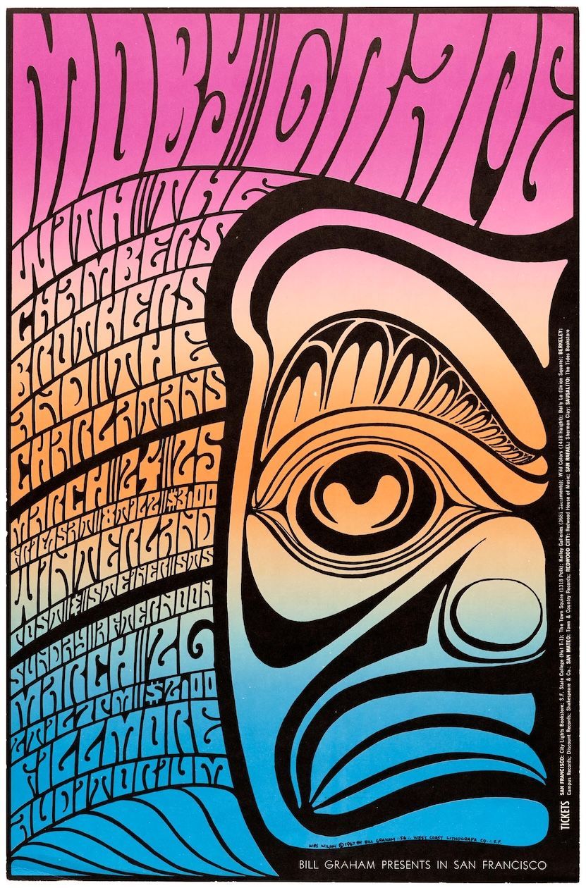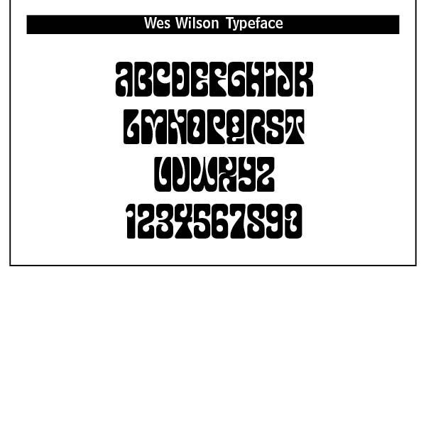 Wrapping words around free flowing areas in order to fill up space is the mark of Wes Wilson’s Psychedelic typeface. This face was in direct and distinct contradiction to the highly legible and clear Swiss type that preceded it.