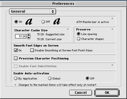 Type Manager™), and Apple’s TrueType fonts, the on screen font “jaggies” were replaced by the outline representation of the font, so that the screen faithfully represented the final printed output. Fonts could be “downloaded” per job to the Postscript printer, even if the printer did not have the specified fonts inherent in its ROM files.